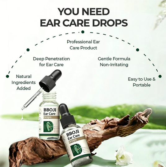 BBOJI Ear Care Drops are your all-in-one solution for every common ear concern—from discharge, hearing discomfort, and ear wax blockage, to itching, tinnitus, and pressure. Our formula flushes out moisture, dissolves wax buildup, and soothes sensitive skin, so you can wave goodbye to irritation. Just 1 drop keeps your ears healthy, happy, and comfortable all day long.